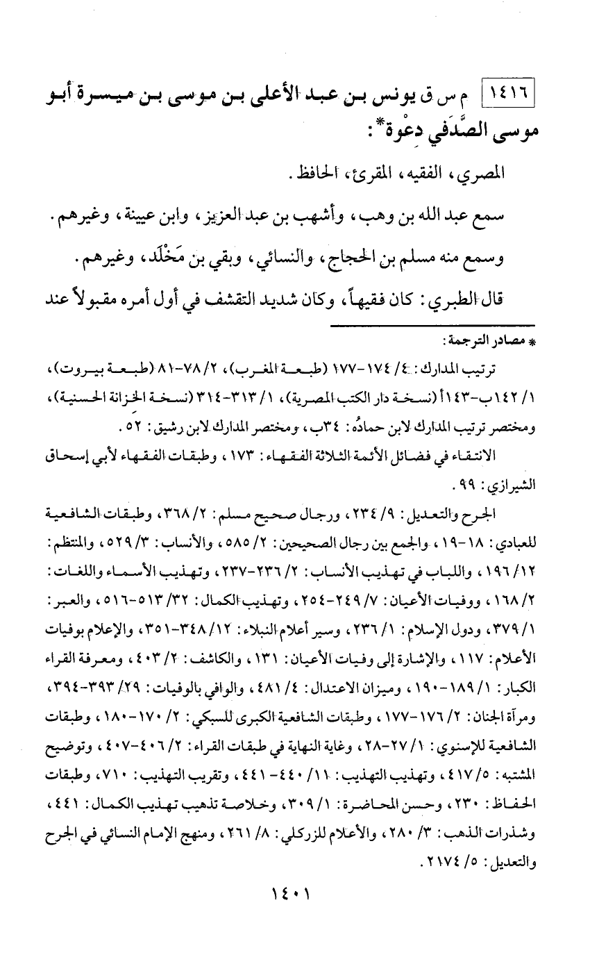 1416 - م س ق يونس بن عبد الأعلى بن موسى بن ميسرة أبو موسى الصّدفي دعوة *: