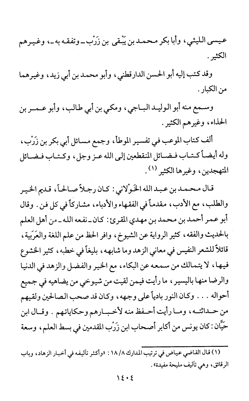 (¬1) قال القاضي عياض في ترتيب المدارك 8/ 18: «وأكثر تآليفه في أخبار الزهاد، وباب الرقائق، وهي تآليف مليحة مفيدة».