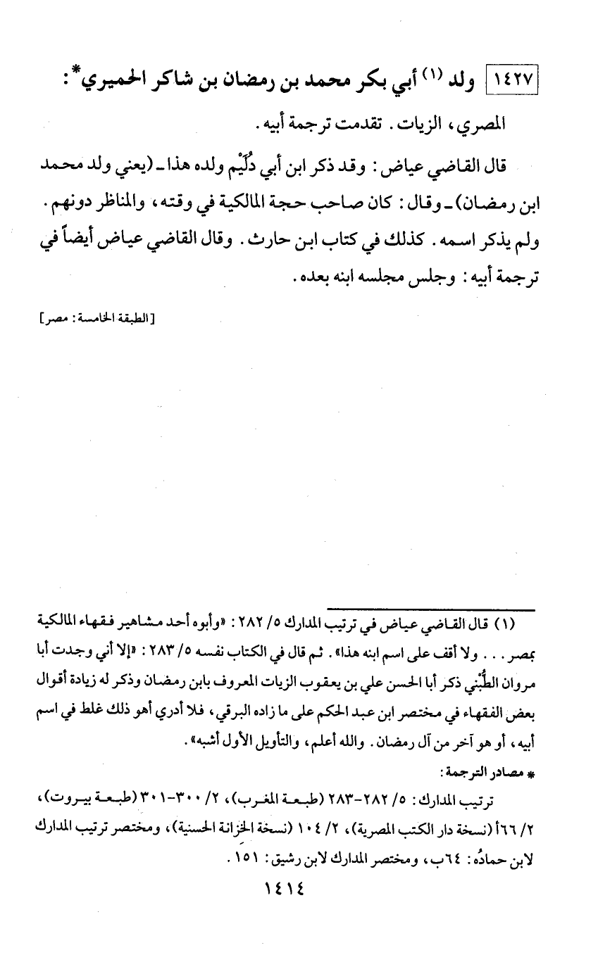 1427 - ولد (¬1) أبي بكر محمد بن رمضان بن شاكر الحميري *: