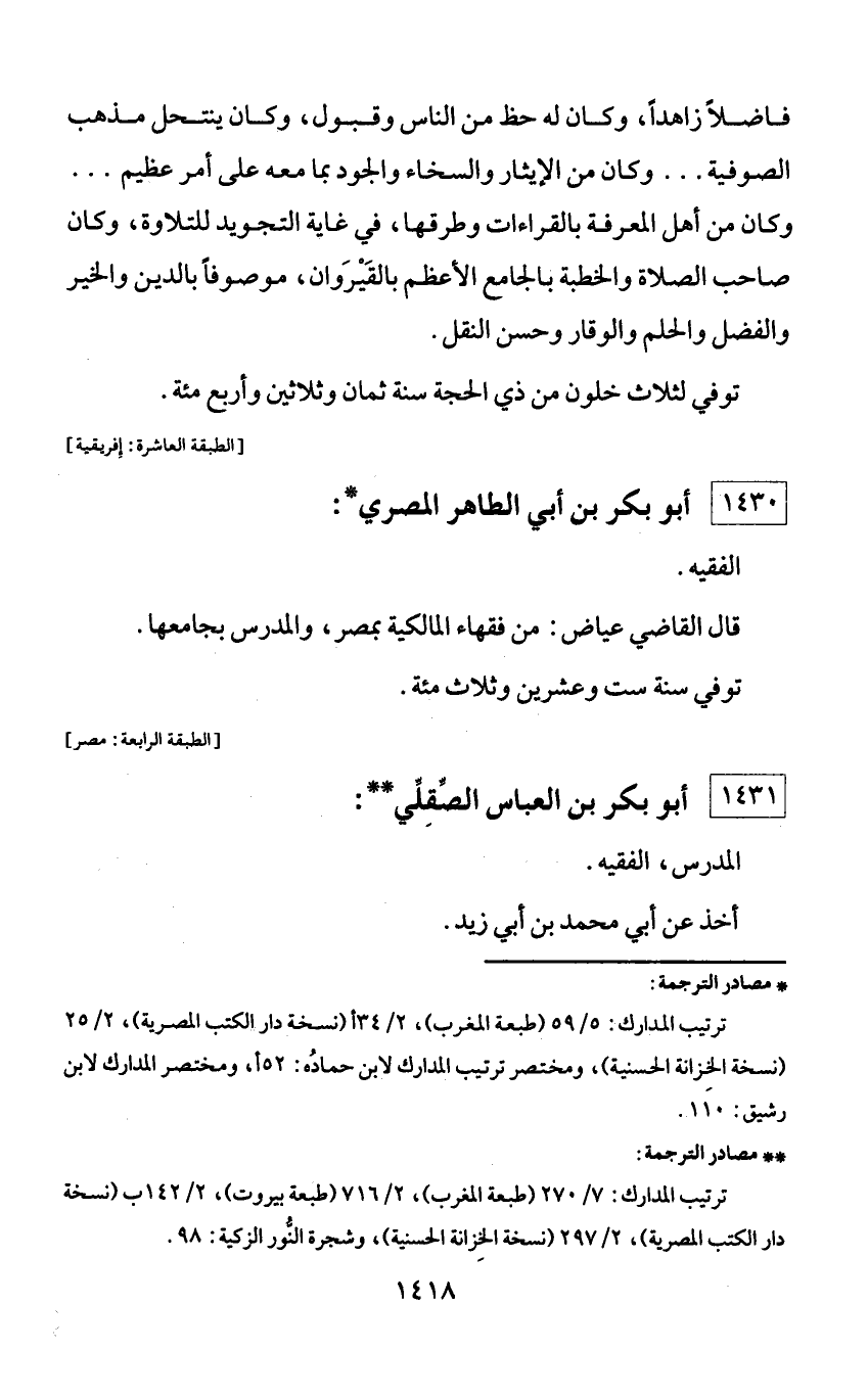 * مصادر الترجمة: ترتيب المدارك: 5/ 59 (طبعة المغرب)، 2/ 34 أ (نسخة دار الكتب المصرية)، 2/ 25 (نسخة الخزانة الحسنية)، ومختصر ترتيب المدارك لابن حماده: 52 أ، ومختصر المدارك لابن رشيق: 110.