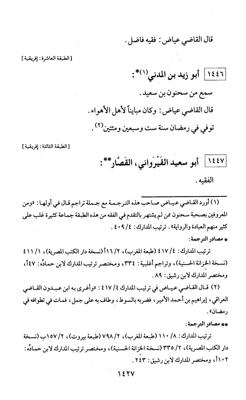 (¬1) أورد القاضي عياض صاحب هذه الترجمة مع جملة تراجم قال في أولها: «ومن المعروفين بصحبة سحنون ممن لم يشتهر بالتقدم في الفقه من هذه الطبقة جماعة كثيرة غلب على كثير منهم العبادة والرواية». ترتيب المدارك: 4/ 409.