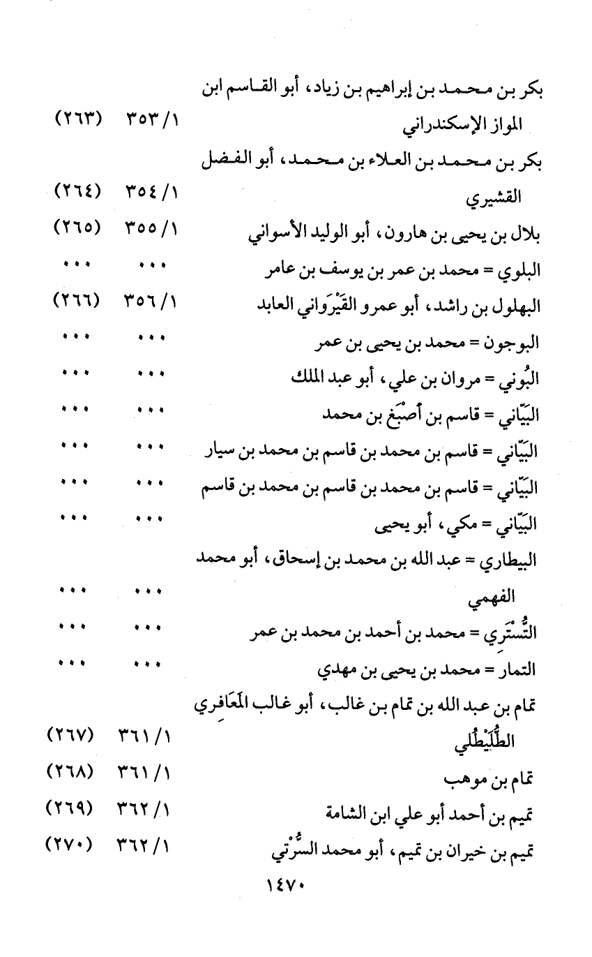 تمام بن عبد الله بن تمام بن غالب، أبو غالب المعافري الطّليطلي \ 1/ 361 \ (267)
