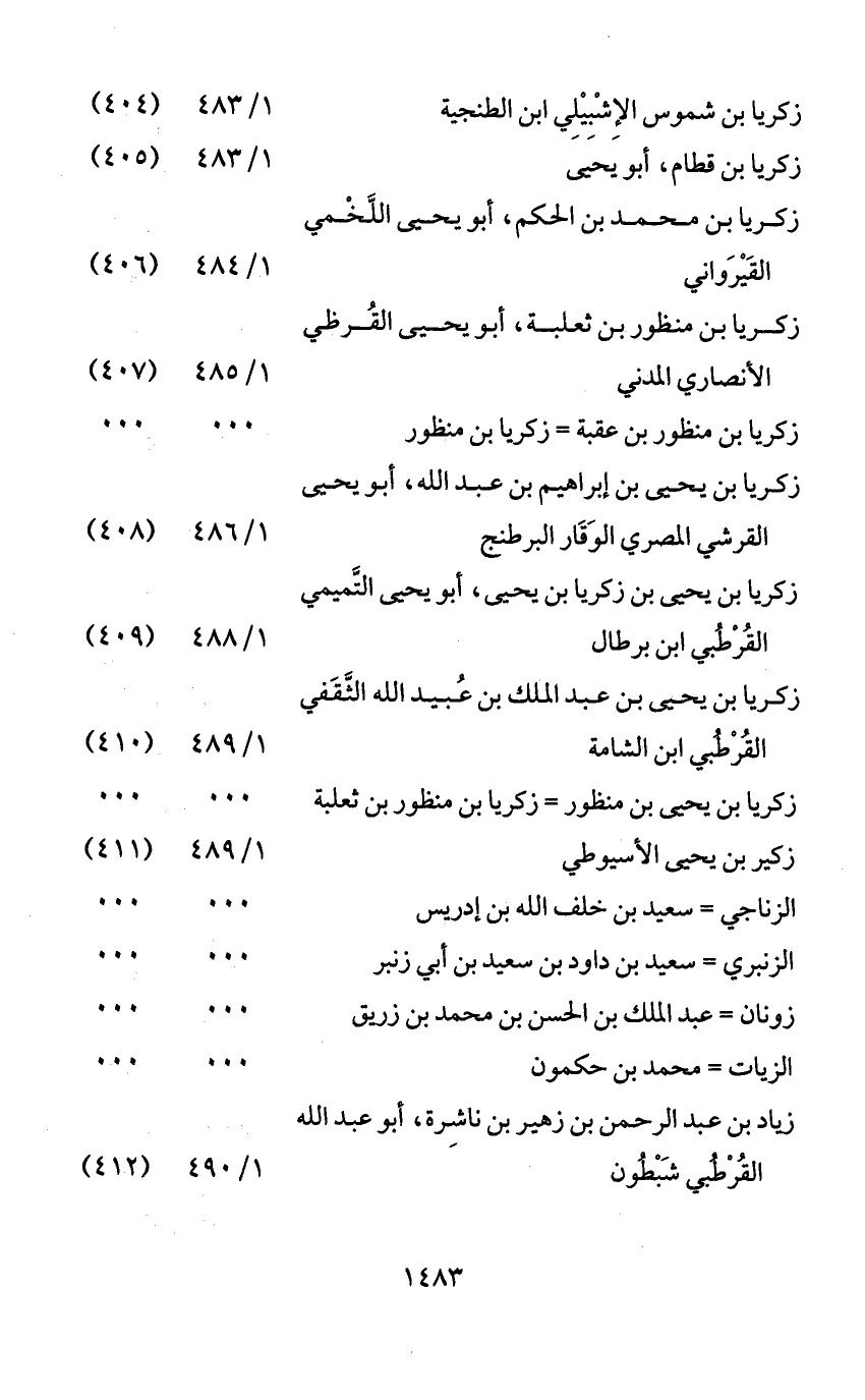 زكريا بن يحيى بن عبد الملك بن عبيد الله الثّقفي القرطبي ابن الشامة\ 1/ 489 \ (410)