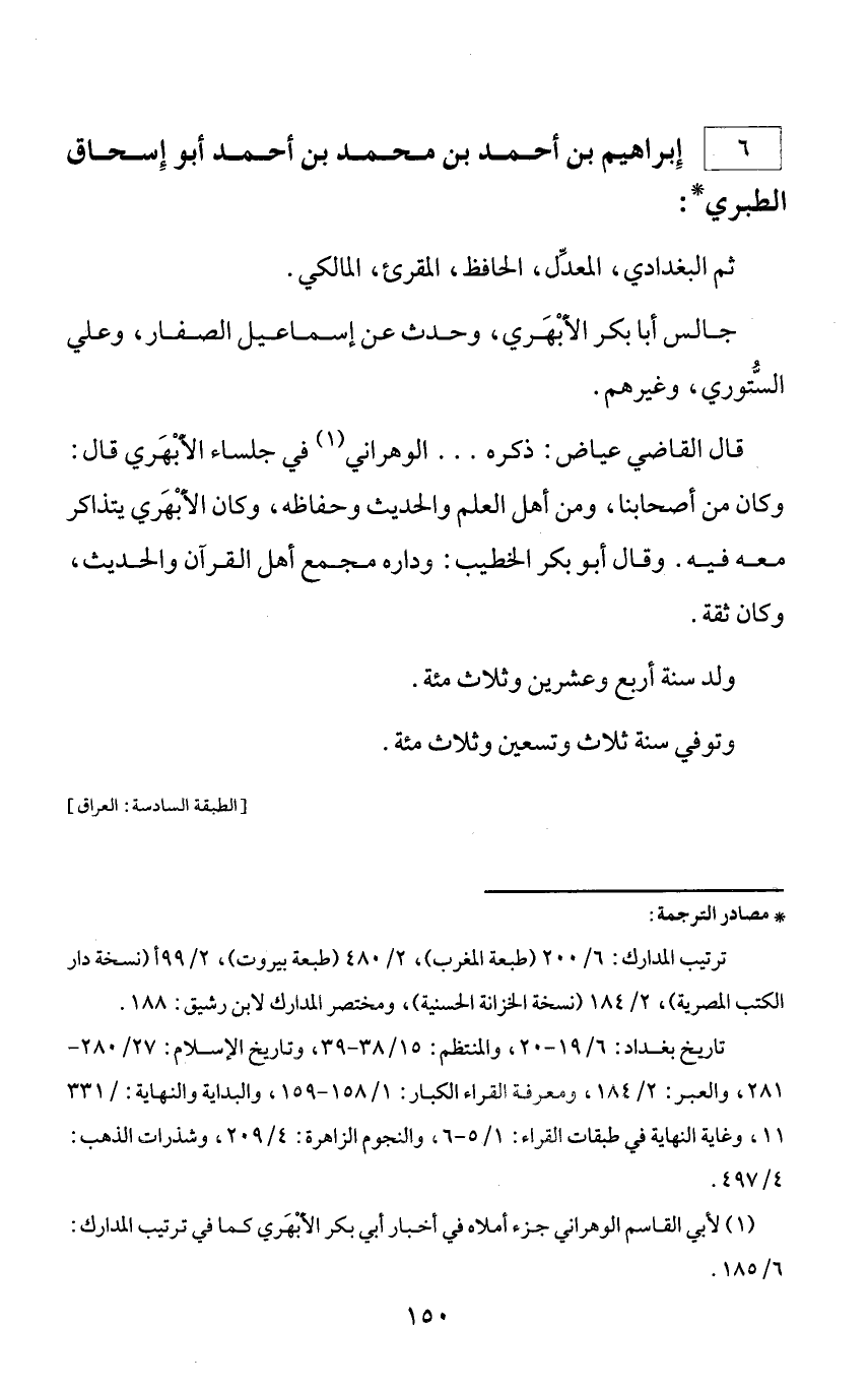 (¬1) لأبي القاسم الوهراني جزء أملاه في أخبار أبي بكر الأبهري كما في ترتيب المدارك: 6/ 185.