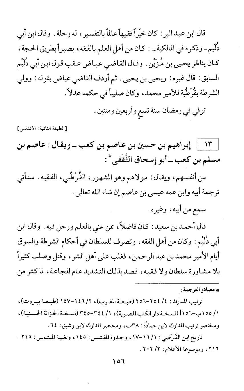 * مصادر الترجمة: ترتيب المدارك: 4/ 254 - 256 (طبعة المغرب)، 2/ 146 - 147 (طبعة بيروت)، 1/ 155 ب - 156 أ (نسخة دار الكتب المصرية)، 1/ 344 - 345 (نسخة الخزانة الحسنية)، ومختصر ترتيب المدارك لابن حماده: 38 ب، ومختصر المدارك لابن رشيق: 64. تاريخ ابن الفرضي: 1/ 16 - 17، وجذوة المقتبس: 145، وبغية الملتمس: 215 - 216، وموسوعة الأعلام: 2/ 202.