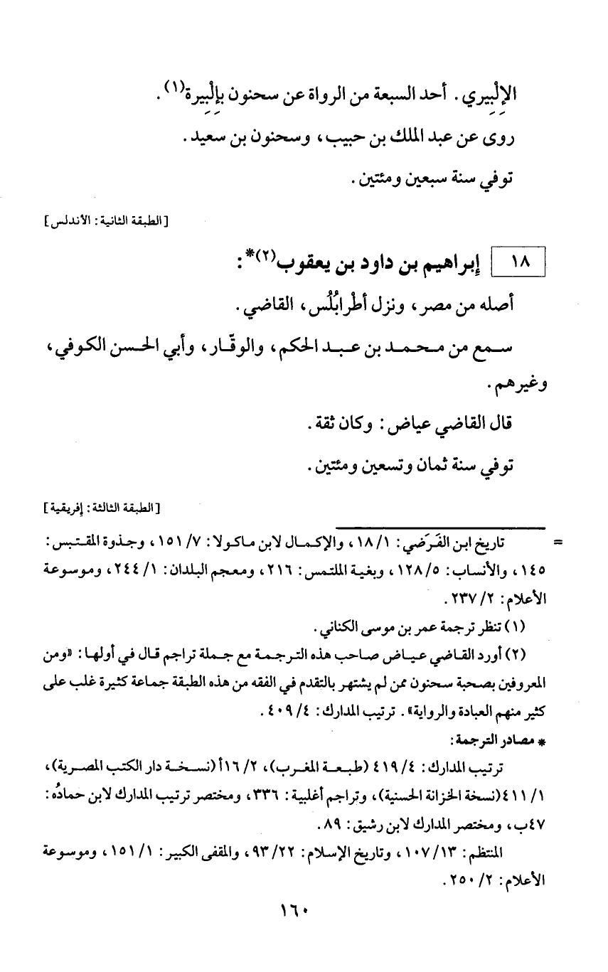 (¬2) أورد القاضي عياض صاحب هذه الترجمة مع جملة تراجم قال في أولها: «ومن المعروفين بصحبة سحنون ممن لم يشتهر بالتقدم في الفقه من هذه الطبقة جماعة كثيرة غلب على كثير منهم العبادة والرواية». ترتيب المدارك: 4/ 409.