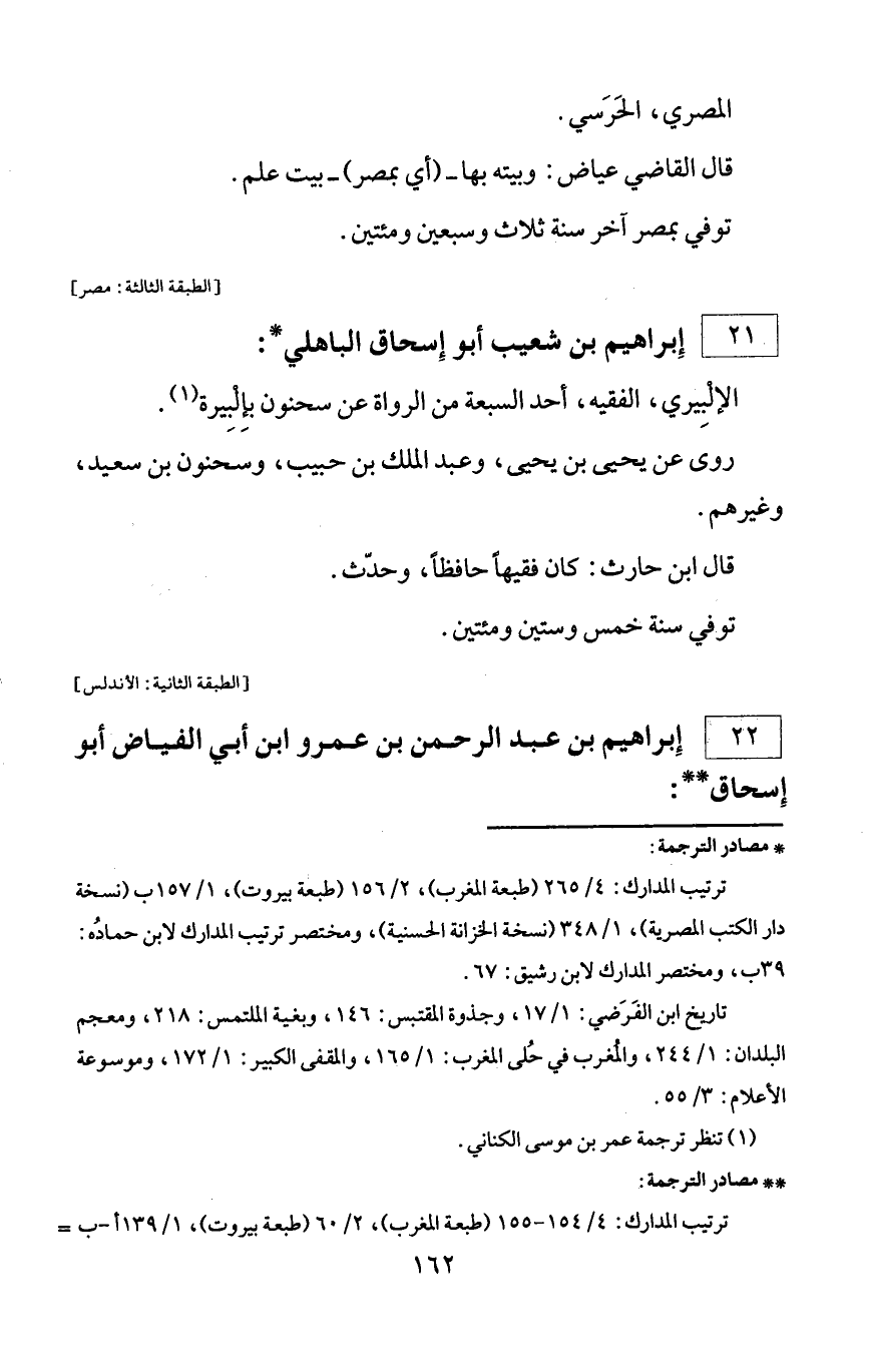 * مصادر الترجمة: ترتيب المدارك: 4/ 265 (طبعة المغرب)، 2/ 156 (طبعة بيروت)، 1/ 157 ب (نسخة دار الكتب المصرية)، 1/ 348 (نسخة الخزانة الحسنية)، ومختصر ترتيب المدارك لابن حماده: 39 ب، ومختصر المدارك لابن رشيق: 67. تاريخ ابن الفرضي: 1/ 17، وجذوة المقتبس: 146، وبغية الملتمس: 218، ومعجم البلدان: 1/ 244، والمغرب في حلى المغرب: 1/ 165، والمقفى الكبير: 1/ 172، وموسوعة الأعلام: 3/ 55.