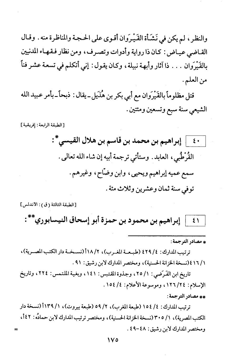 ** مصادر الترجمة: ترتيب المدارك: 4/ 154 (طبعة المغرب)، 2/ 59 (طبعة بيروت)، 1/ 139 أ (نسخة دار الكتب المصرية)، 1/ 305 (نسخة الخزانة الحسنية)، ومختصر ترتيب المدارك لابن حماده: 42 أ، ومختصر المدارك لابن رشيق: 48 - 49. =
