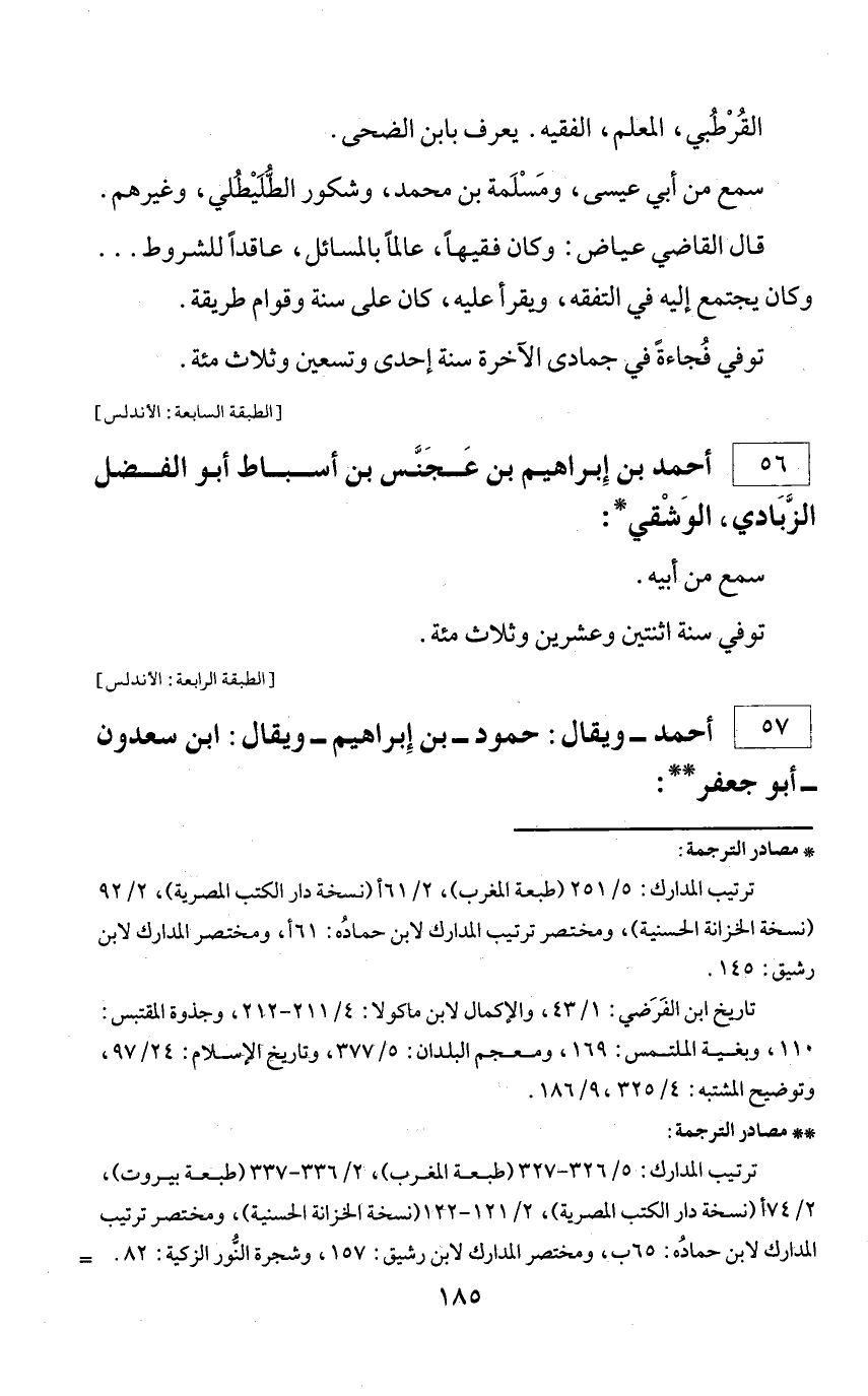 ** مصادر الترجمة: ترتيب المدارك: 5/ 326 - 327 (طبعة المغرب)، 2/ 336 - 337 (طبعة بيروت)، 2/ 74 أ (نسخة دار الكتب المصرية)، 2/ 121 - 122 (نسخة الخزانة الحسنية)، ومختصر ترتيب المدارك لابن حماده: 65 ب، ومختصر المدارك لابن رشيق: 157، وشجرة النّور الزكية: 82. =