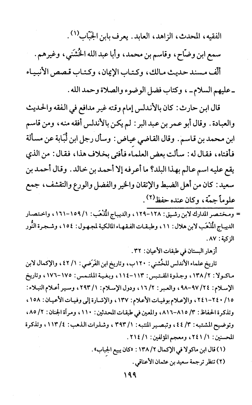 = ومختصر المدارك لابن رشيق: 128 - 129، والديباج المذهب: 1/ 159 - 161، واختصار الديباج المذهب لابن هلال: 11، وطبقات الفقهاء المالكية لمجهول: 154، وشجرة النّور الزكية: 87. أزهار البستان في طبقات الأعيان: 32. تاريخ علماء الأندلس للخشني: 120 ب، وتاريخ ابن الفرضي: 1/ 42، والإكمال لابن ماكولا: 2/ 138، وجذوة المقتبس: 113 - 114، وبغية الملتمس: 175 - 176، وتاريخ الإسلام: 24/ 97 - 98، والعبر: 2/ 16، ودول الإسلام: 1/ 293، وسير أعلام النبلاء: 15/ 240 - 241، والإعلام بوفيات الأعلام: 137، والإشارة إلى وفيات الأعيان: 158، وتذكرة الحفاظ: 3/ 815 - 816، والمعين في طبقات المحدثين: 110، ومرآة الجنان: 2/ 85، وتوضيح المشتبه: 3/ 44، وتبصير المنتبه: 1/ 393، وشذرات الذهب: 4/ 113، وتذكرة المحسنين: 1/ 241، ومعجم المؤلفين: 1/ 214.