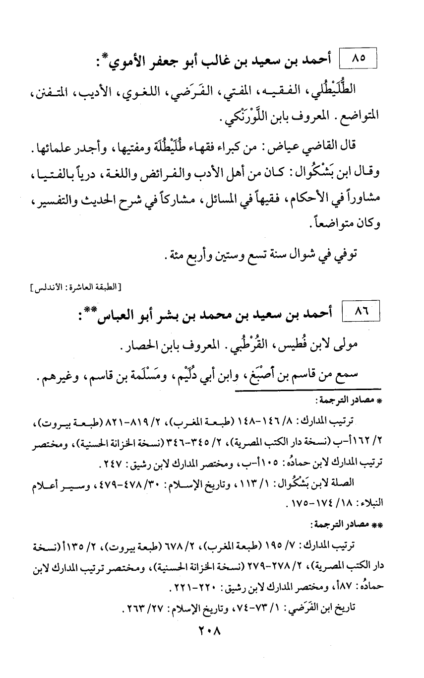 ** مصادر الترجمة: ترتيب المدارك: 7/ 195 (طبعة المغرب)، 2/ 678 (طبعة بيروت)، 2/ 135 أ (نسخة دار الكتب المصرية)، 2/ 278 - 279 (نسخة الخزانة الحسنية)، ومختصر ترتيب المدارك لابن حماده: 87 أ، ومختصر المدارك لابن رشيق: 220 - 221. تاريخ ابن الفرضي: 1/ 73 - 74، وتاريخ الإسلام: 27/ 263.