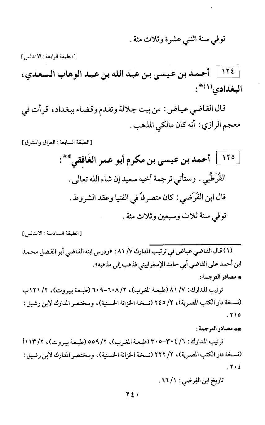 ** مصادر الترجمة: ترتيب المدارك: 6/ 304 - 305 (طبعة المغرب)، 2/ 559 (طبعة بيروت)، 2/ 113 أ (نسخة دار الكتب المصرية)، 2/ 222 (نسخة الخزانة الحسنية)، ومختصر المدارك لابن رشيق: 204. تاريخ ابن الفرضي: 1/ 66.