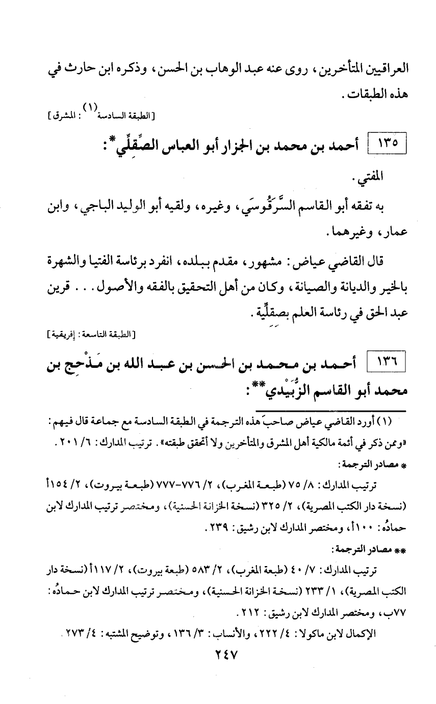 (¬1) أورد القاضي عياض صاحب هذه الترجمة في الطبقة السادسة مع جماعة قال فيهم: «وممن ذكر في أئمة مالكية أهل المشرق والمتأخرين ولا أتحقق طبقته». ترتيب المدارك: 6/ 201.