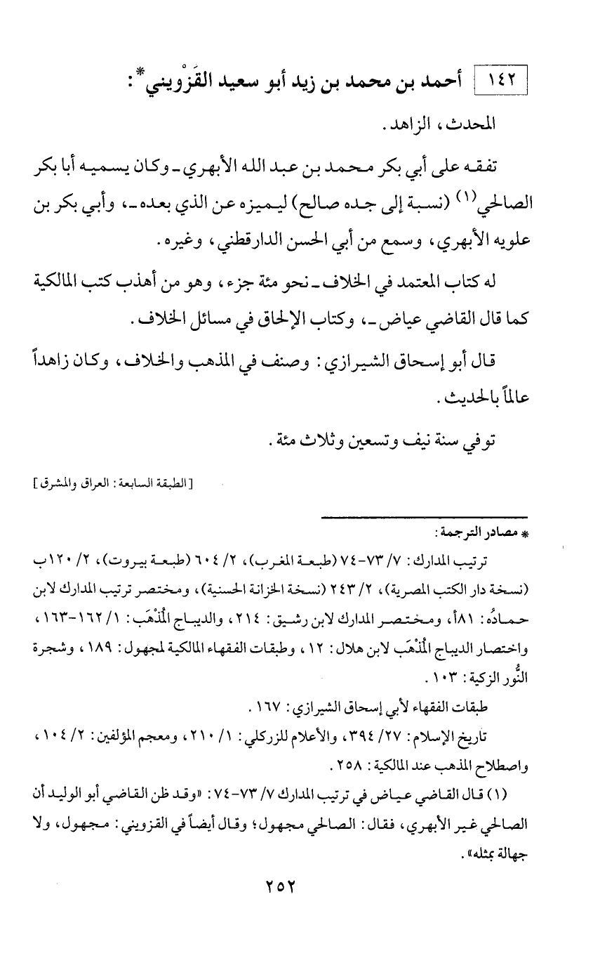 (¬1) قال القاضي عياض في ترتيب المدارك 7/ 73 - 74: «وقد ظن القاضي أبو الوليد أن الصالحي غير الأبهري، فقال: الصالحي مجهول؛ وقال أيضا في القزويني: مجهول، ولا جهالة بمثله».