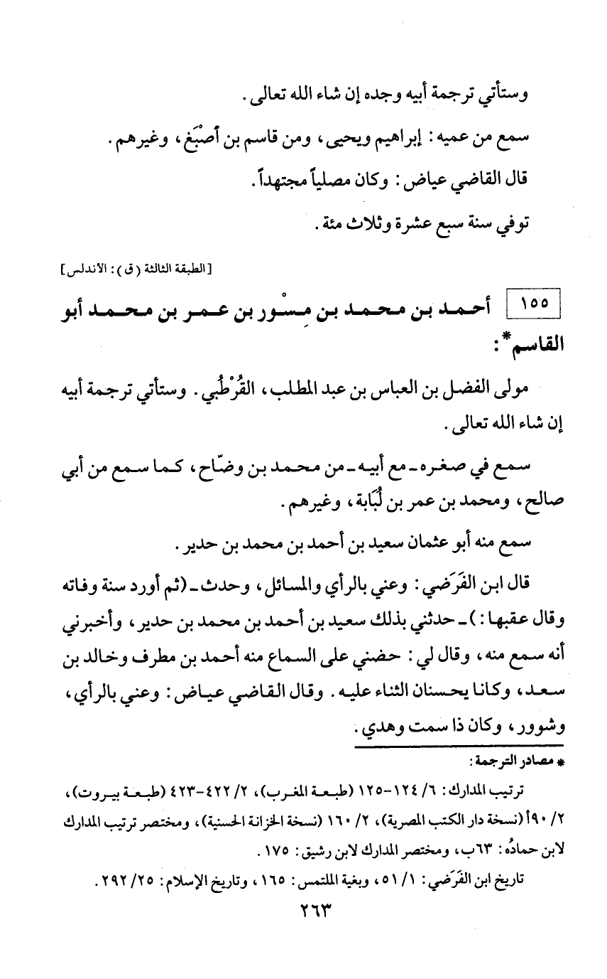 * مصادر الترجمة: ترتيب المدارك: 6/ 124 - 125 (طبعة المغرب)، 2/ 422 - 423 (طبعة بيروت)، 2/ 90 أ (نسخة دار الكتب المصرية)، 2/ 160 (نسخة الخزانة الحسنية)، ومختصر ترتيب المدارك لابن حماده: 63 ب، ومختصر المدارك لابن رشيق: 175. تاريخ ابن الفرضي: 1/ 51، وبغية الملتمس: 165، وتاريخ الإسلام: 25/ 292.