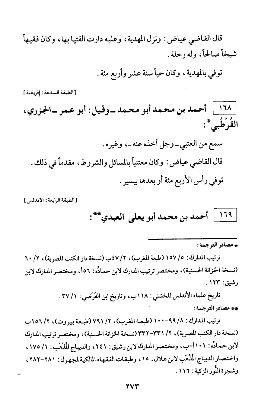 * مصادر الترجمة: ترتيب المدارك: 5/ 157 (طبعة المغرب)، 2/ 47 ب (نسخة دار الكتب المصرية)، 2/ 60 (نسخة الخزانة الحسنية)، ومختصر ترتيب المدارك لابن حماده: 56 أ، ومختصر المدارك لابن رشيق: 123. تاريخ علماء الأندلس للخشني: 118 ب، وتاريخ ابن الفرضي: 1/ 37.