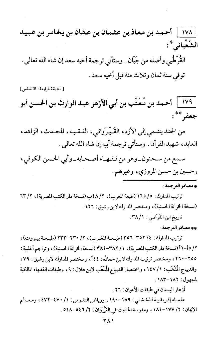 * مصادر الترجمة: ترتيب المدارك: 5/ 165 (طبعة المغرب)، 2/ 48 ب (نسخة دار الكتب المصرية)، 2/ 63 (نسخة الخزانة الحسنية)، ومختصر المدارك لابن رشيق: 126. تاريخ ابن الفرضي: 1/ 38.