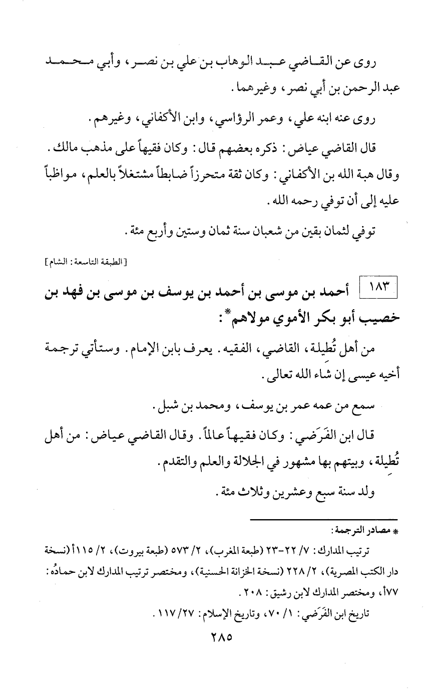 183 - أحمد بن موسى بن أحمد بن يوسف بن موسى بن فهد بن