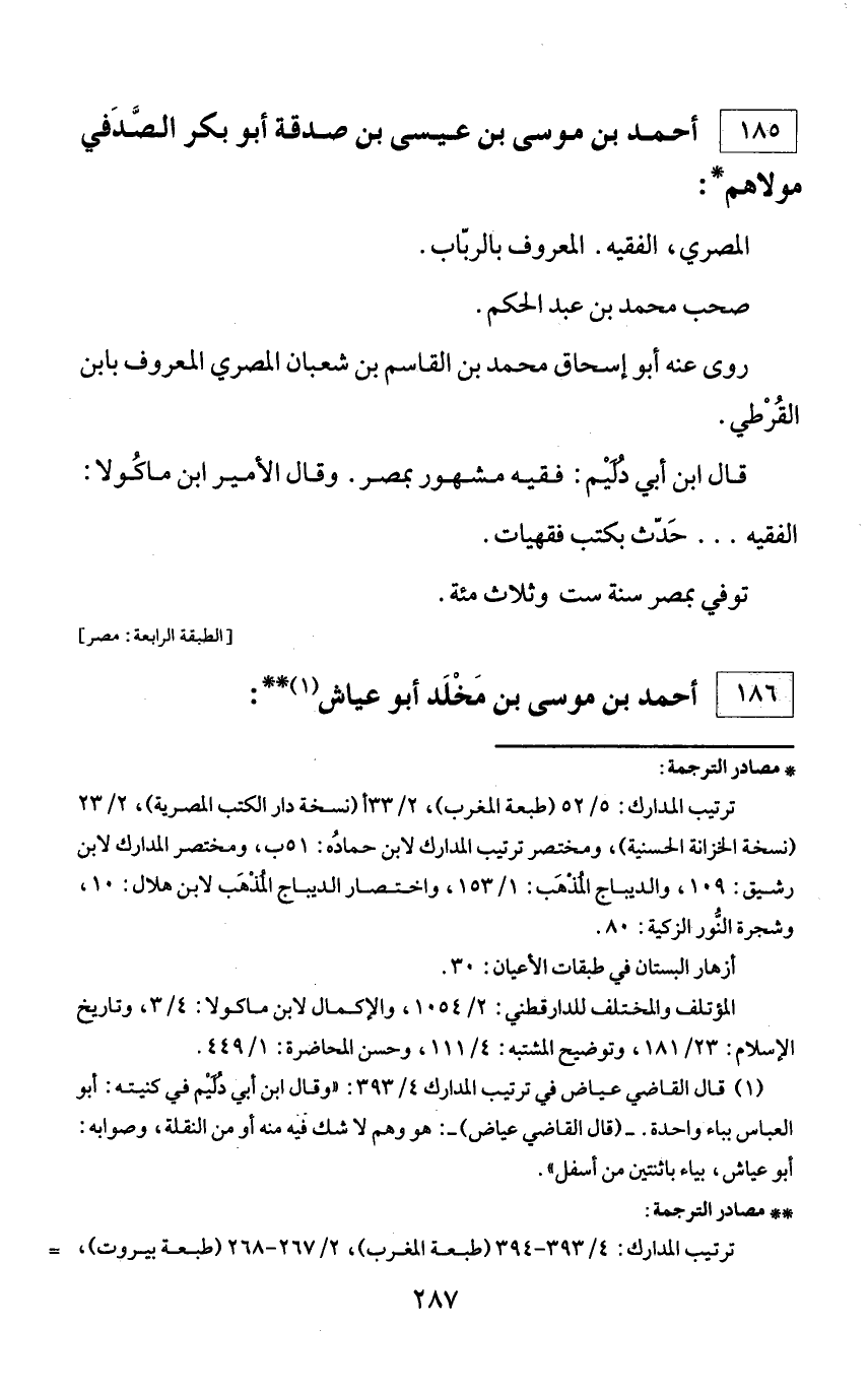 185 - أحمد بن موسى بن عيسى بن صدقة أبو بكر الصّدفي