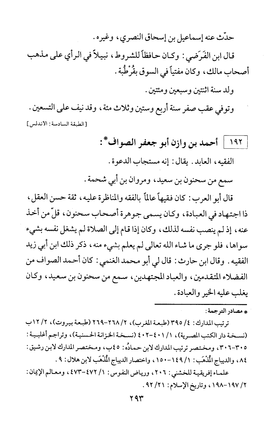* مصادر الترجمة: ترتيب المدارك: 4/ 395 (طبعة المغرب)، 2/ 268 - 269 (طبعة بيروت)، 2/ 12 ب (نسخة دار الكتب المصرية)، 1/ 401 - 402 (نسخة الخزانة الحسنية)، وتراجم أغلبية: 305 - 306، ومختصر ترتيب المدارك لابن حماده: 45 ب، ومختصر المدارك لابن رشيق: 84، والديباج المذهب: 1/ 149 - 150، واختصار الديباج المذهب لابن هلال: 9. علماء إفريقية للخشني: 206، ورياض النفوس: 1/ 472 - 473، ومعالم الإيمان: 2/ 197 - 198، وتاريخ الإسلام: 21/ 92.