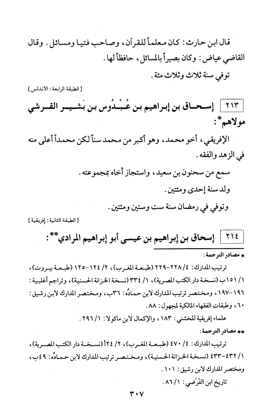 * مصادر الترجمة: ترتيب المدارك: 4/ 228 - 229 (طبعة المغرب)، 2/ 124 - 125 (طبعة بيروت)، 1/ 151 ب (نسخة دار الكتب المصرية)، 1/ 334 (نسخة الخزانة الحسنية)، وتراجم أغلبية: 196 - 197، ومختصر ترتيب المدارك لابن حماده: 36 ب، ومختصر المدارك لابن رشيق: 60، وطبقات الفقهاء المالكية لمجهول: 88. علماء إفريقية للخشني: 183، والإكمال لابن ماكولا: 1/ 296.