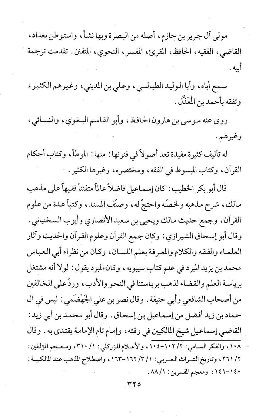 مولى آل جرير بن حازم، أصله من البصرة وبها نشأ، واستوطن بغداد، القاضي، الفقيه، الحافظ، المقرئ، المفسر، النحوي، المتفنن. تقدمت ترجمة أبيه.