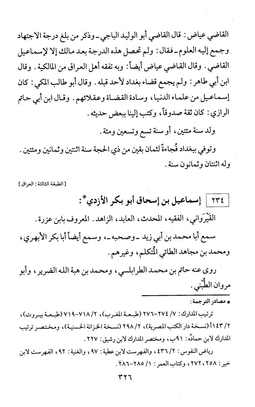 * مصادر الترجمة: ترتيب المدارك: 7/ 274 - 276 (طبعة المغرب)، 2/ 718 - 719 (طبعة بيروت)، 2/ 143 أ (نسخة دار الكتب المصرية)، 2/ 298 (نسخة الخزانة الحسنية)، ومختصر ترتيب المدارك لابن حماده: 91 ب، ومختصر المدارك لابن رشيق: 227. رياض النفوس: 2/ 436، والفهرست لابن عطية: 97، والغنية: 92، الفهرست لابن خير: 258، 272، وكتاب العمر: 1/ 285 - 286.