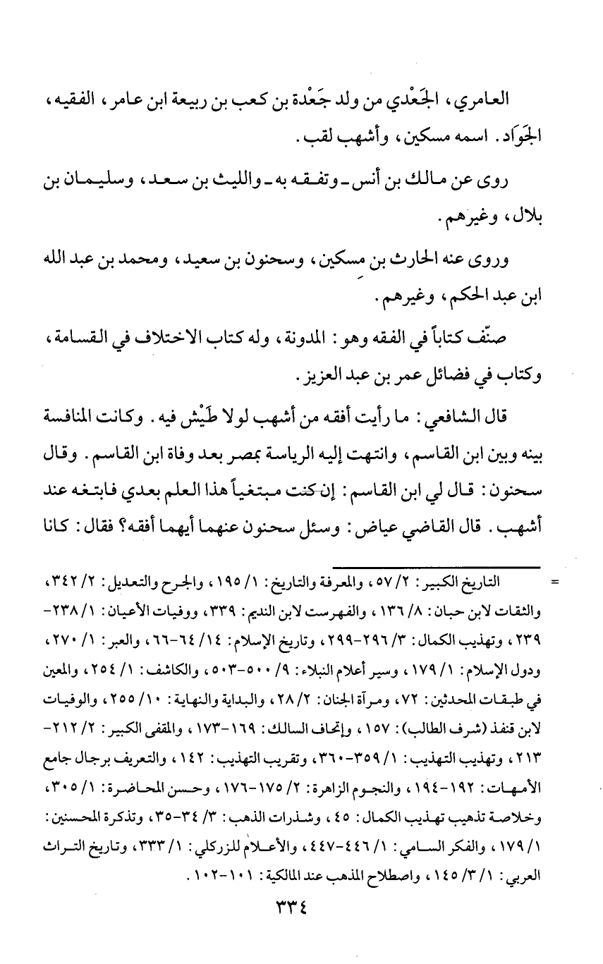 العامري، الجعدي من ولد جعدة بن كعب بن ربيعة ابن عامر، الفقيه، الجواد. اسمه مسكين، وأشهب لقب.