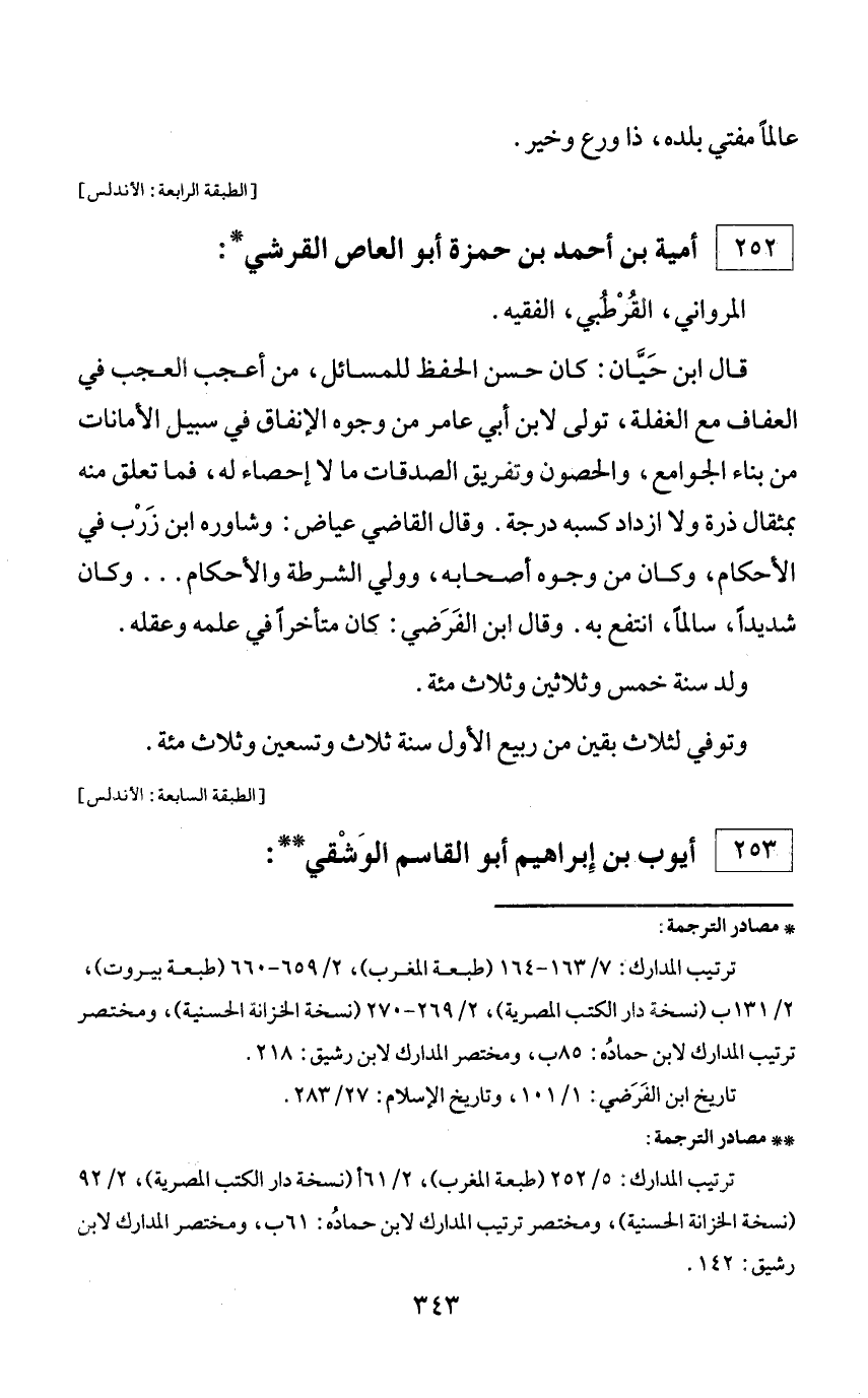 * مصادر الترجمة: ترتيب المدارك: 7/ 163 - 164 (طبعة المغرب)، 2/ 659 - 660 (طبعة بيروت)، 2/ 131 ب (نسخة دار الكتب المصرية)، 2/ 269 - 270 (نسخة الخزانة الحسنية)، ومختصر ترتيب المدارك لابن حماده: 85 ب، ومختصر المدارك لابن رشيق: 218. تاريخ ابن الفرضي: 1/ 101، وتاريخ الإسلام: 27/ 283.