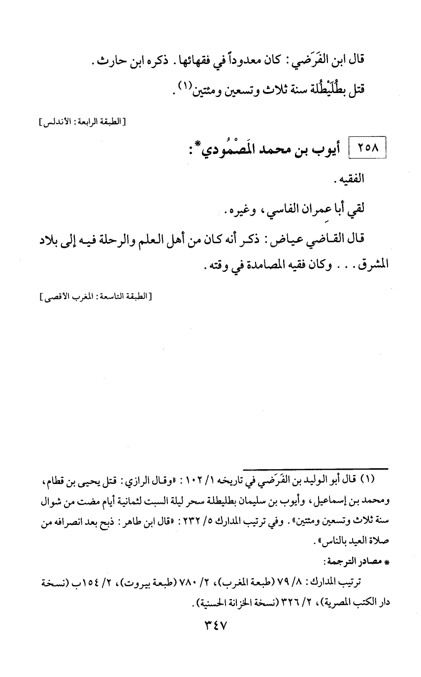 (¬1) قال أبو الوليد بن الفرضي في تاريخه 1/ 102: «وقال الرازي: قتل يحيى بن قطام، ومحمد بن إسماعيل، وأيوب بن سليمان بطليطلة سحر ليلة السبت لثمانية أيام مضت من شوال سنة ثلاث وتسعين ومئتين». وفي ترتيب المدارك 5/ 232: «قال ابن طاهر: ذبح بعد انصرافه من صلاة العيد بالناس».