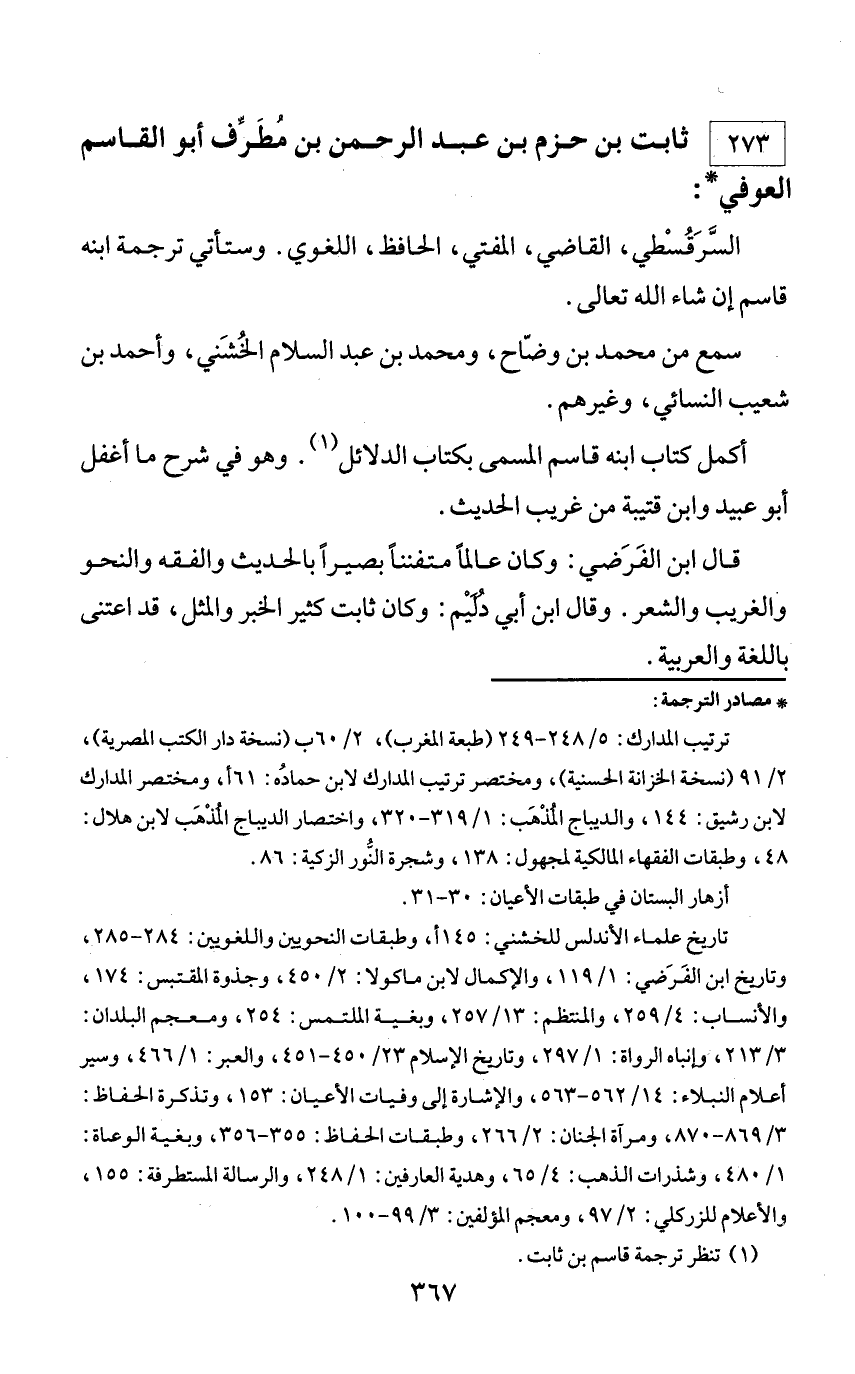 273 - ثابت بن حزم بن عبد الرحمن بن مطرّف أبو القاسم