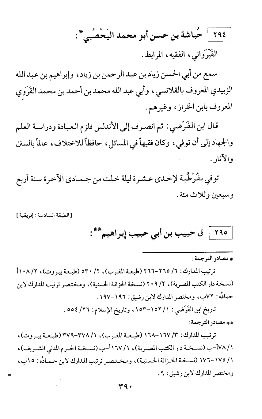 * مصادر الترجمة: ترتيب المدارك: 6/ 265 - 266 (طبعة المغرب)، 2/ 530 (طبعة بيروت)، 2/ 108 أ (نسخة دار الكتب المصرية)، 2/ 209 (نسخة الخزانة الحسنية)، ومختصر ترتيب المدارك لابن حماده: 72 ب، ومختصر المدارك لابن رشيق: 196 - 197. تاريخ ابن الفرضي: 1/ 152 - 153، وتاريخ الإسلام: 26/ 554.