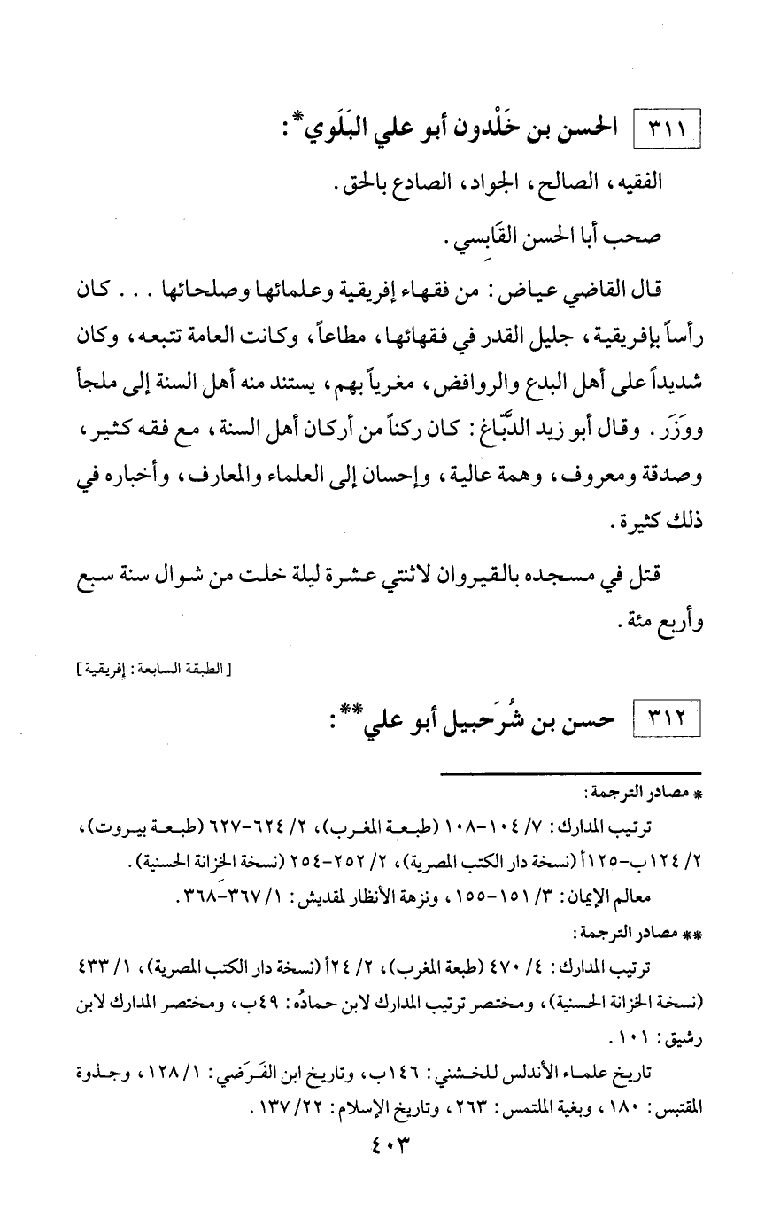 ** مصادر الترجمة: ترتيب المدارك: 4/ 470 (طبعة المغرب)، 2/ 24 أ (نسخة دار الكتب المصرية)، 1/ 433 (نسخة الخزانة الحسنية)، ومختصر ترتيب المدارك لابن حماده: 49 ب، ومختصر المدارك لابن رشيق: 101. تاريخ علماء الأندلس للخشني: 146 ب، وتاريخ ابن الفرضي: 1/ 128، وجذوة المقتبس: 180، وبغية الملتمس: 263، وتاريخ الإسلام: 22/ 137.