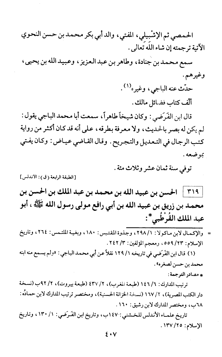 * مصادر الترجمة: ترتيب المدارك: 6/ 146 (طبعة المغرب)، 2/ 437 (طبعة بيروت)، 2/ 92 ب (نسخة دار الكتب المصرية)، 2/ 167 (نسخة الخزانة الحسنية)، ومختصر ترتيب المدارك لابن حماده: 68 ب، ومختصر المدارك لابن رشيق: 160. تاريخ علماء الأندلس للخشني: 147 ب، وتاريخ ابن الفرضي: 1/ 130، وتاريخ الإسلام: 25/ 137.