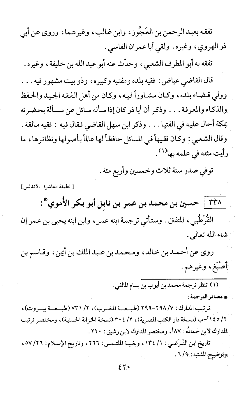 * مصادر الترجمة: ترتيب المدارك: 7/ 298 - 299 (طبعة المغرب)، 2/ 731 (طبعة بيروت)، 2/ 145 أ - ب (نسخة دار الكتب المصرية)، 2/ 304 (نسخة الخزانة الحسنية)، ومختصر ترتيب المدارك لابن حماده: 87 أ، ومختصر المدارك لابن رشيق: 220. تاريخ ابن الفرضي: 1/ 134، وبغية الملتمس: 266، وتاريخ الإسلام: 26/ 57، وتوضيح المشتبه: 9/ 6.