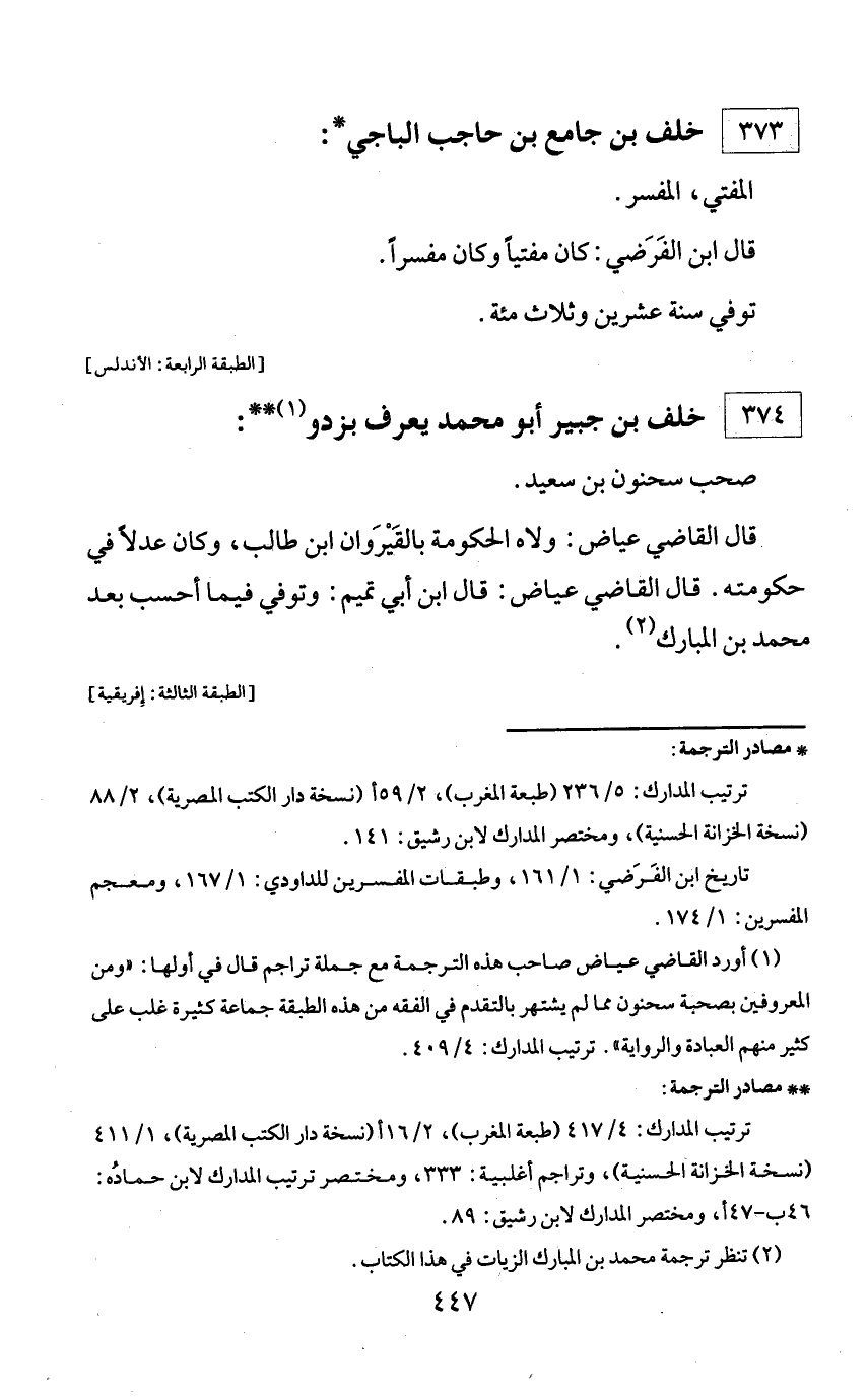* مصادر الترجمة: ترتيب المدارك: 5/ 236 (طبعة المغرب)، 2/ 59 أ (نسخة دار الكتب المصرية)، 2/ 88 (نسخة الخزانة الحسنية)، ومختصر المدارك لابن رشيق: 141. تاريخ ابن الفرضي: 1/ 161، وطبقات المفسرين للداودي: 1/ 167، ومعجم المفسرين: 1/ 174.