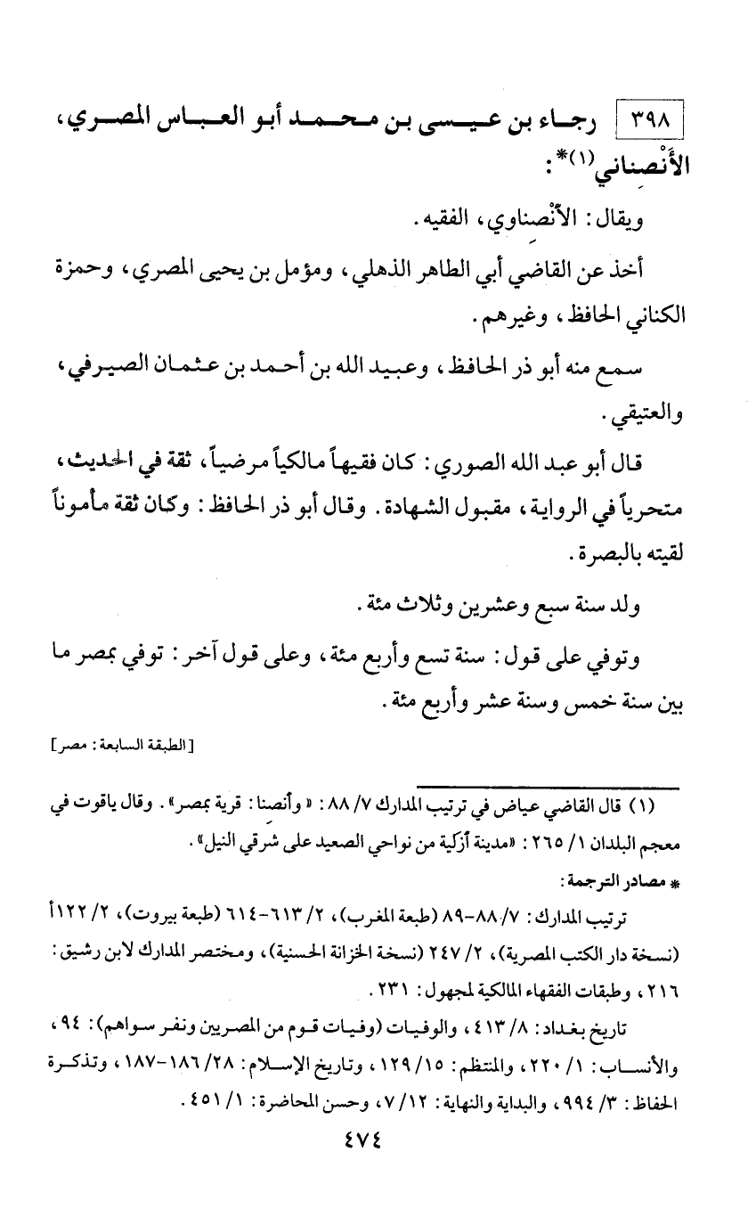 398 - رجاء بن عيسى بن محمد أبو العباس المصري،