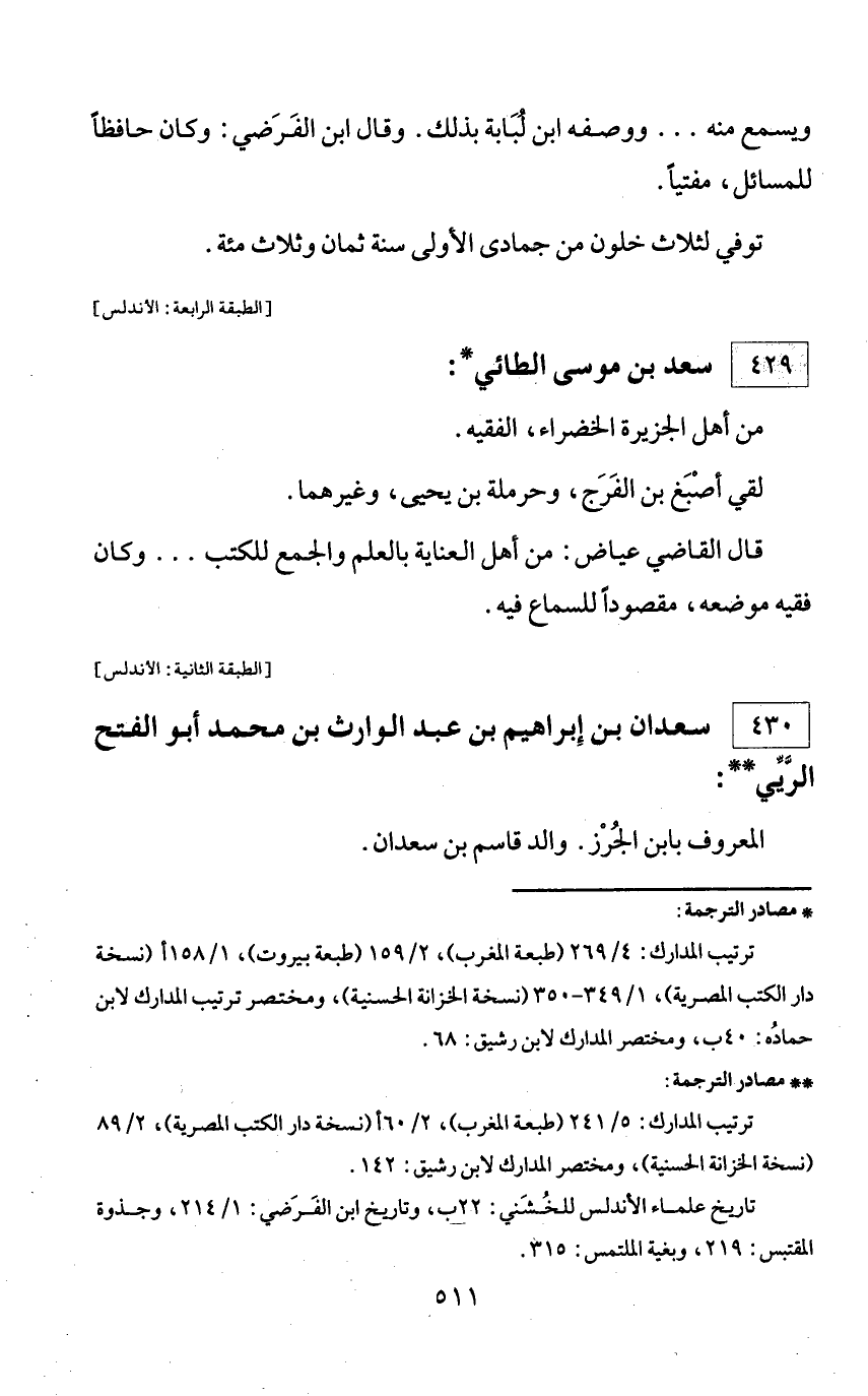 ** مصادر الترجمة: ترتيب المدارك: 5/ 241 (طبعة المغرب)، 2/ 60 أ (نسخة دار الكتب المصرية)، 2/ 89 (نسخة الخزانة الحسنية)، ومختصر المدارك لابن رشيق: 142. تاريخ علماء الأندلس للخشني: 22 ب، وتاريخ ابن الفرضي: 1/ 214، وجذوة المقتبس: 219، وبغية الملتمس: 315.