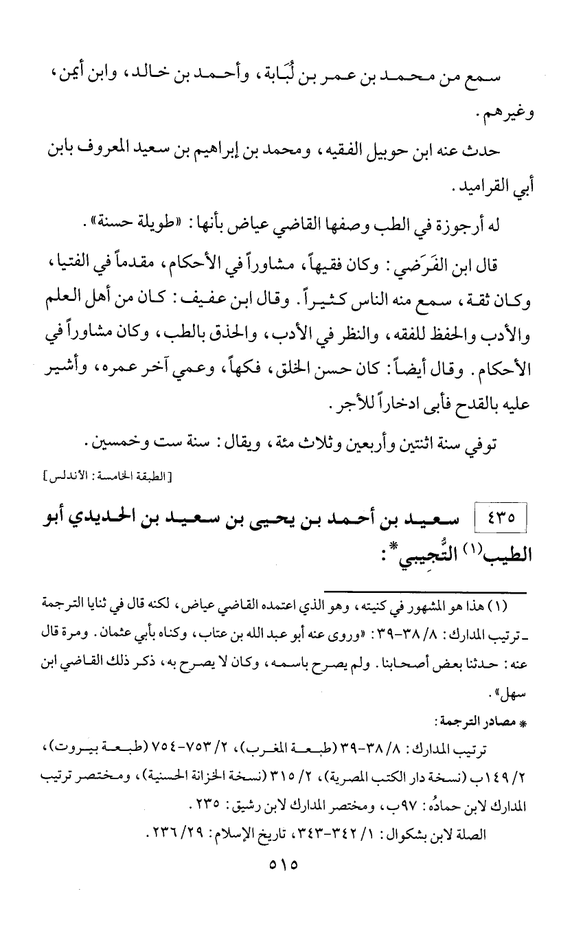 * مصادر الترجمة: ترتيب المدارك: 8/ 38 - 39 (طبعة المغرب)، 2/ 753 - 754 (طبعة بيروت)، 2/ 149 ب (نسخة دار الكتب المصرية)، 2/ 315 (نسخة الخزانة الحسنية)، ومختصر ترتيب المدارك لابن حماده: 97 ب، ومختصر المدارك لابن رشيق: 235. الصلة لابن بشكوال: 1/ 342 - 343، تاريخ الإسلام: 29/ 236.