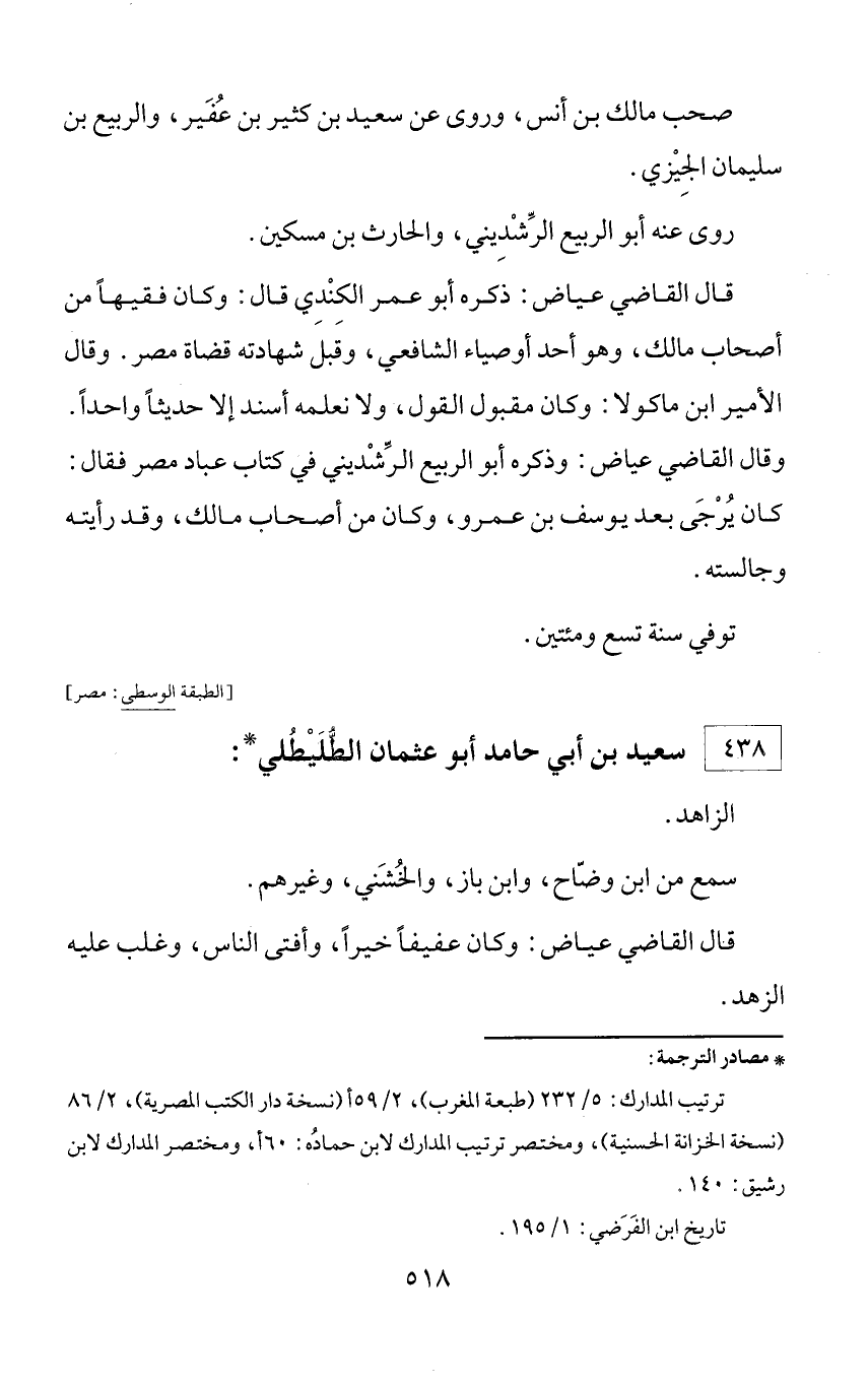 * مصادر الترجمة: ترتيب المدارك: 5/ 232 (طبعة المغرب)، 2/ 59 أ (نسخة دار الكتب المصرية)، 2/ 86 (نسخة الخزانة الحسنية)، ومختصر ترتيب المدارك لابن حماده: 60 أ، ومختصر المدارك لابن رشيق: 140. تاريخ ابن الفرضي: 1/ 195.