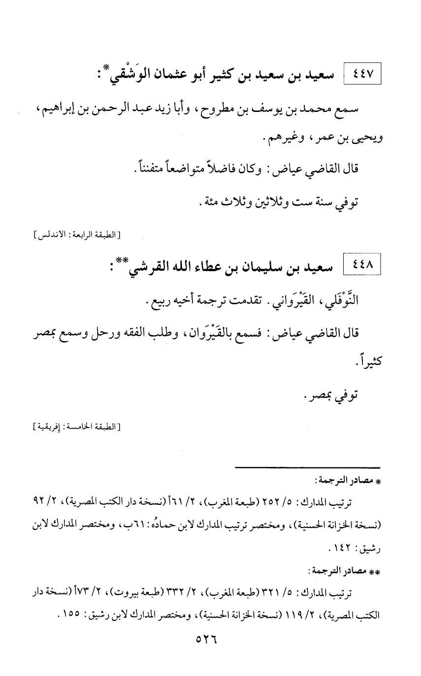 ** مصادر الترجمة: ترتيب المدارك: 5/ 321 (طبعة المغرب)، 2/ 332 (طبعة بيروت)، 2/ 73 أ (نسخة دار الكتب المصرية)، 2/ 119 (نسخة الخزانة الحسنية)، ومختصر المدارك لابن رشيق: 155.