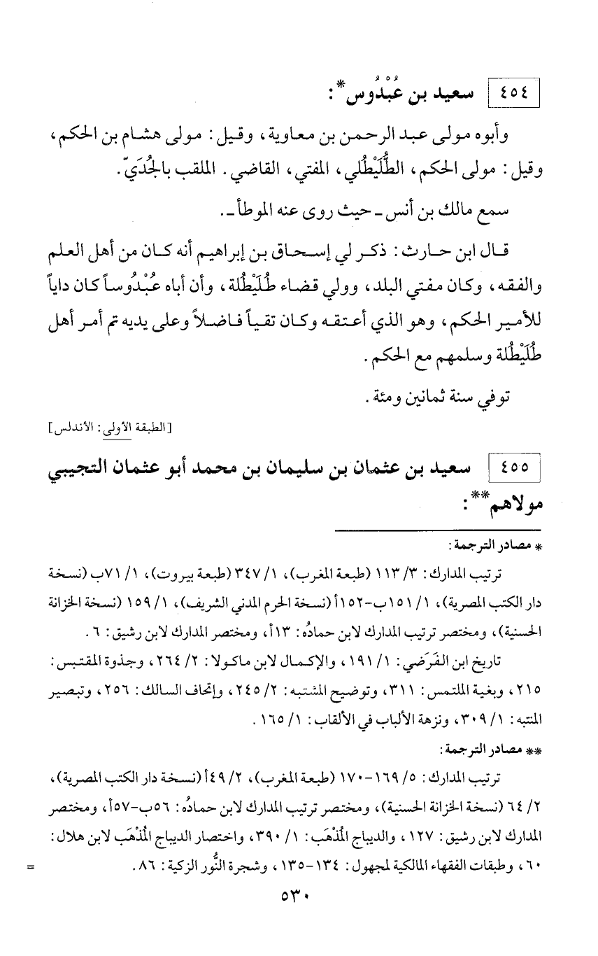* مصادر الترجمة: ترتيب المدارك: 3/ 113 (طبعة المغرب)، 1/ 347 (طبعة بيروت)، 1/ 71 ب (نسخة دار الكتب المصرية)، 1/ 151 ب - 152 أ (نسخة الحرم المدني الشريف)، 1/ 159 (نسخة الخزانة الحسنية)، ومختصر ترتيب المدارك لابن حماده: 13 أ، ومختصر المدارك لابن رشيق: 6. تاريخ ابن الفرضي: 1/ 191، والإكمال لابن ماكولا: 2/ 264، وجذوة المقتبس: 215، وبغية الملتمس: 311، وتوضيح المشتبه: 2/ 245، وإتحاف السالك: 256، وتبصير المنتبه: 1/ 309، ونزهة الألباب في الألقاب: 1/ 165.