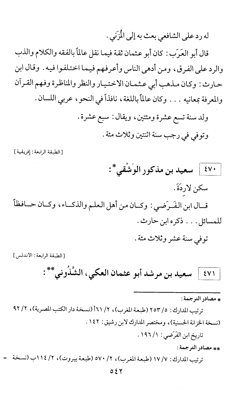 * مصادر الترجمة: ترتيب المدارك: 5/ 253 (طبعة المغرب)، 2/ 61 أ (نسخة دار الكتب المصرية)، 2/ 92 (نسخة الخزانة الحسنية)، ومختصر المدارك لابن رشيق: 142. تاريخ ابن الفرضي: 1/ 196.