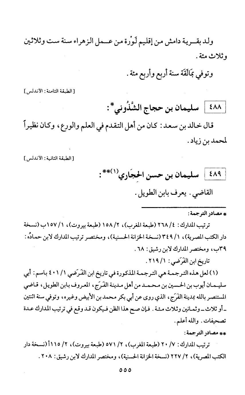 * مصادر الترجمة: ترتيب المدارك: 4/ 268 (طبعة المغرب)، 2/ 158 (طبعة بيروت)، 1/ 157 ب (نسخة دار الكتب المصرية)، 1/ 349 (نسخة الخزانة الحسنية)، ومختصر ترتيب المدارك لابن حماده: 39 ب، ومختصر المدارك لابن رشيق: 68. تاريخ ابن الفرضي: 1/ 219.