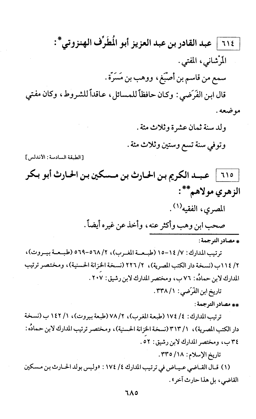 * مصادر الترجمة: ترتيب المدارك: 7/ 14 - 15 (طبعة المغرب)، 2/ 568 - 569 (طبعة بيروت)، 2/ 114 ب (نسخة دار الكتب المصرية)، 2/ 226 (نسخة الخزانة الحسنية)، ومختصر ترتيب المدارك لابن حماده: 76 ب، ومختصر المدارك لابن رشيق: 207. تاريخ ابن الفرضي: 1/ 338.