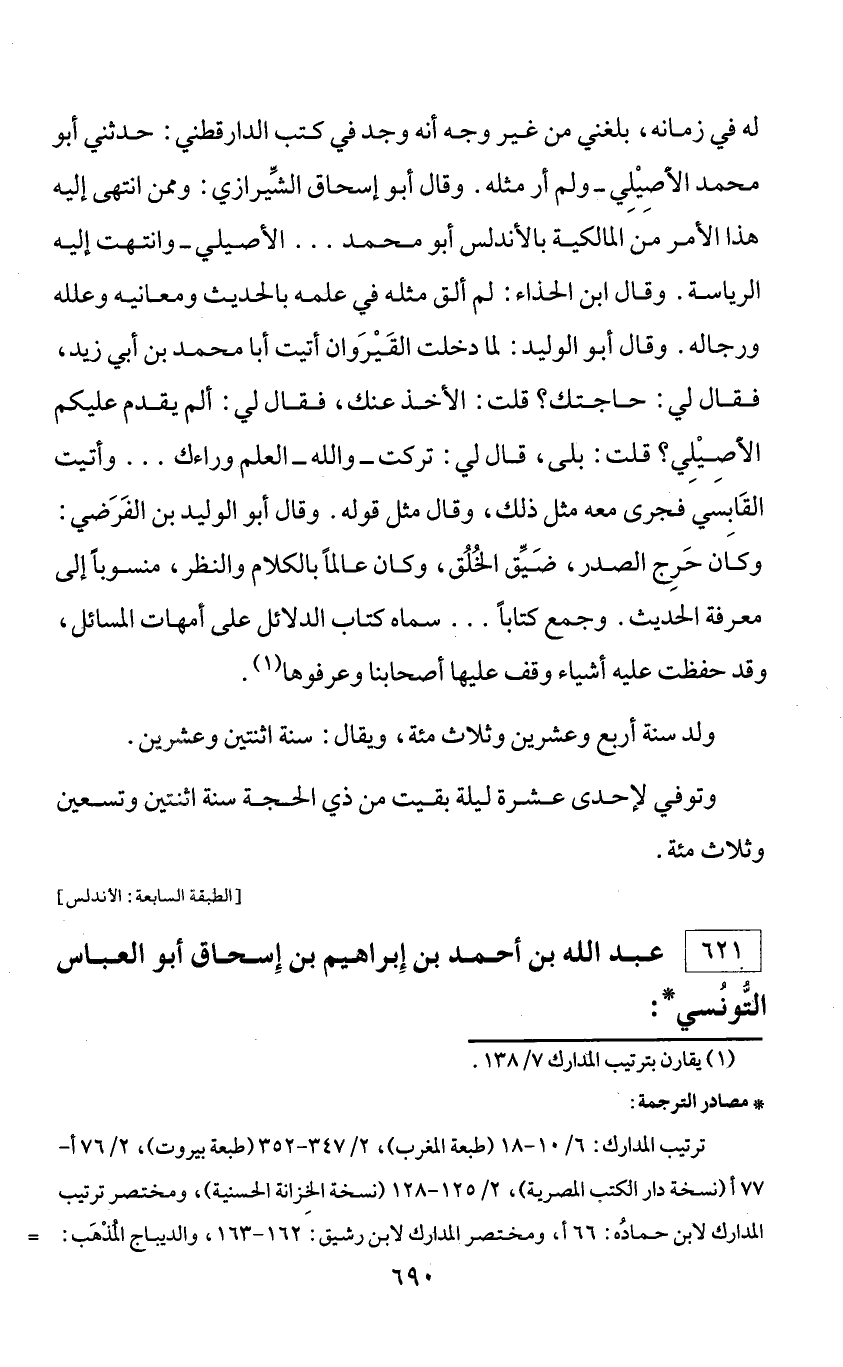 * مصادر الترجمة: ترتيب المدارك: 6/ 10 - 18 (طبعة المغرب)، 2/ 347 - 352 (طبعة بيروت)، 2/ 76 أ - 77 أ (نسخة دار الكتب المصرية)، 2/ 125 - 128 (نسخة الخزانة الحسنية)، ومختصر ترتيب المدارك لابن حماده: 66 أ، ومختصر المدارك لابن رشيق: 162 - 163، والديباج المذهب: =
