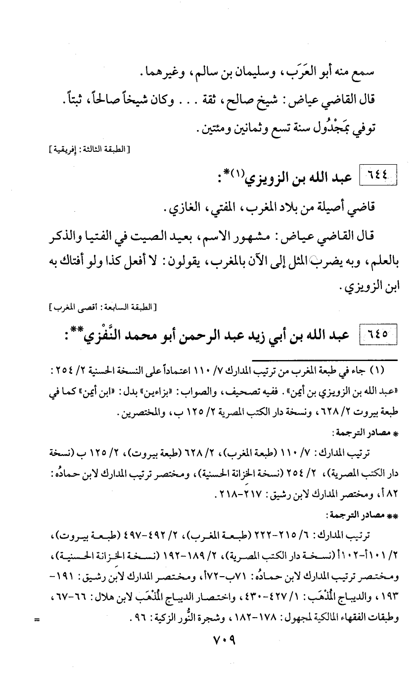 * مصادر الترجمة: ترتيب المدارك: 7/ 110 (طبعة المغرب)، 2/ 628 (طبعة بيروت)، 2/ 125 ب (نسخة دار الكتب المصرية)، 2/ 254 (نسخة الخزانة الحسنية)، ومختصر ترتيب المدارك لابن حماده: 82 أ، ومختصر المدارك لابن رشيق: 217 - 218.