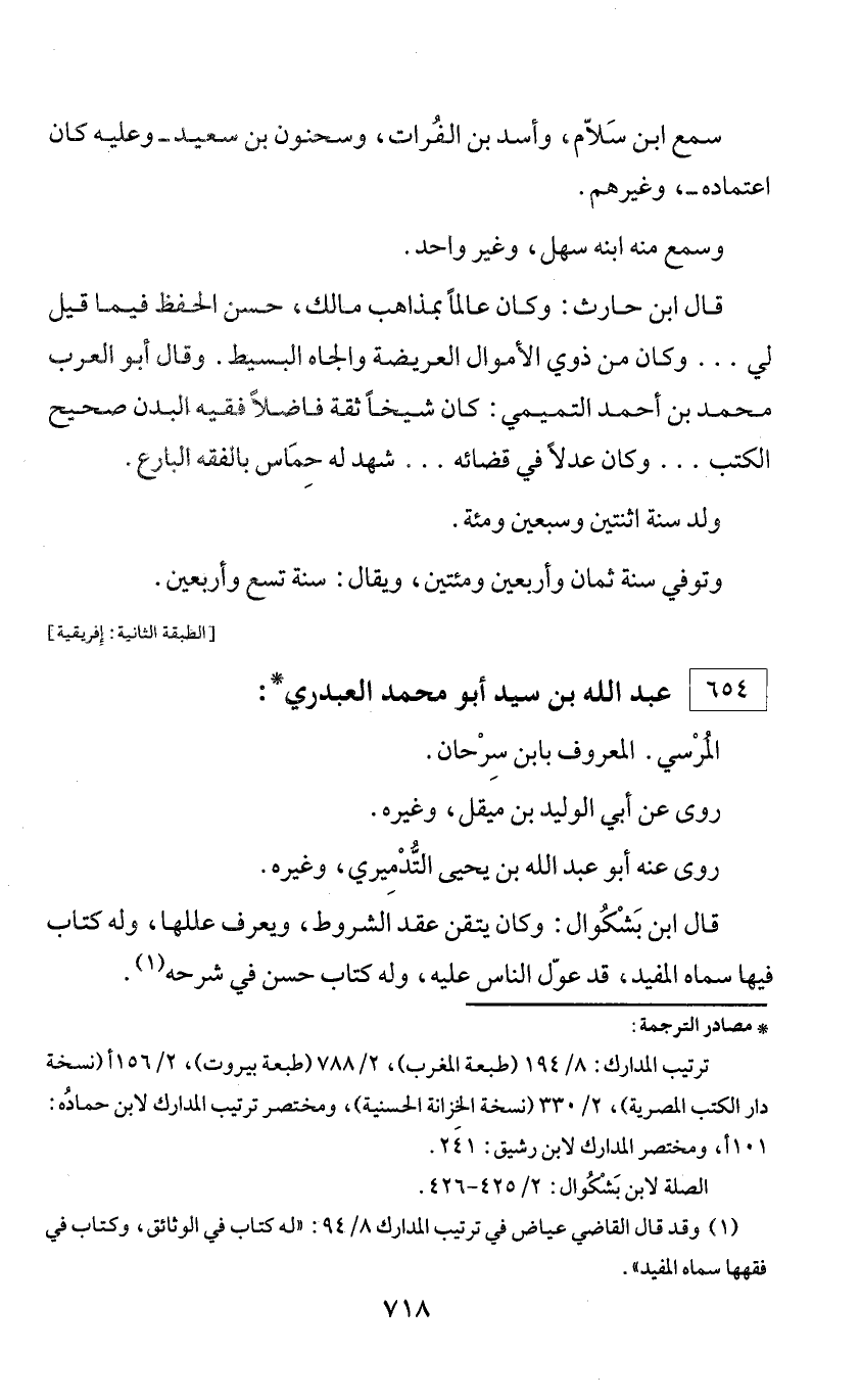 * مصادر الترجمة: ترتيب المدارك: 8/ 194 (طبعة المغرب)، 2/ 788 (طبعة بيروت)، 2/ 156 أ (نسخة دار الكتب المصرية)، 2/ 330 (نسخة الخزانة الحسنية)، ومختصر ترتيب المدارك لابن حماده: 101 أ، ومختصر المدارك لابن رشيق: 241. الصلة لابن بشكوال: 2/ 425 - 426.