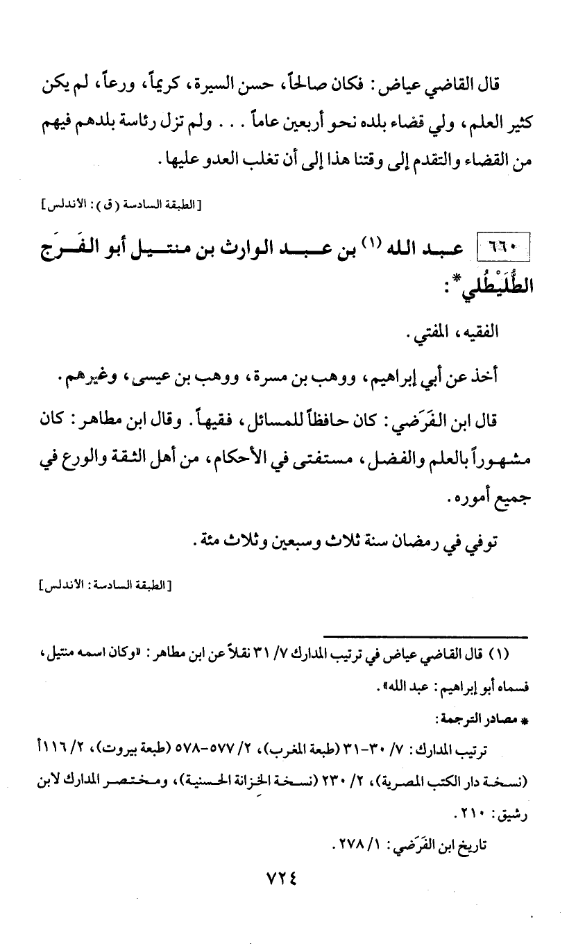 * مصادر الترجمة: ترتيب المدارك: 7/ 30 - 31 (طبعة المغرب)، 2/ 577 - 578 (طبعة بيروت)، 2/ 116 أ (نسخة دار الكتب المصرية)، 2/ 230 (نسخة الخزانة الحسنية)، ومختصر المدارك لابن رشيق: 210. تاريخ ابن الفرضي: 1/ 278.