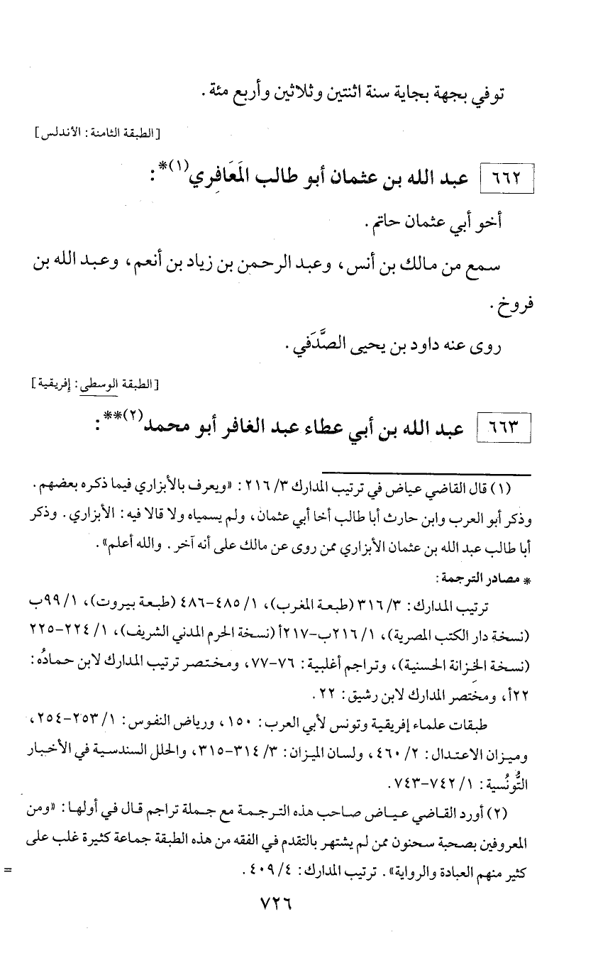 * مصادر الترجمة: ترتيب المدارك: 3/ 316 (طبعة المغرب)، 1/ 485 - 486 (طبعة بيروت)، 1/ 99 ب (نسخة دار الكتب المصرية)، 1/ 216 ب - 217 أ (نسخة الحرم المدني الشريف)، 1/ 224 - 225 (نسخة الخزانة الحسنية)، وتراجم أغلبية: 76 - 77، ومختصر ترتيب المدارك لابن حماده: 22 أ، ومختصر المدارك لابن رشيق: 22. طبقات علماء إفريقية وتونس لأبي العرب: 150، ورياض النفوس: 1/ 253 - 254، وميزان الاعتدال: 2/ 460، ولسان الميزان: 3/ 314 - 315، والحلل السندسية في الأخبار التّونسية: 1/ 742 - 743.